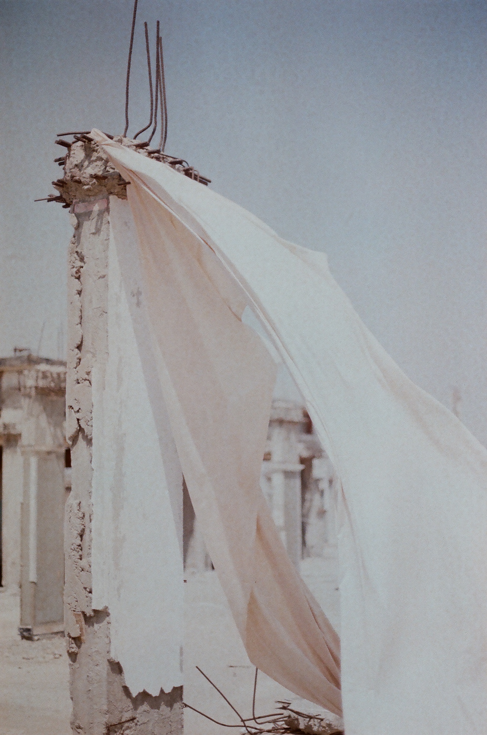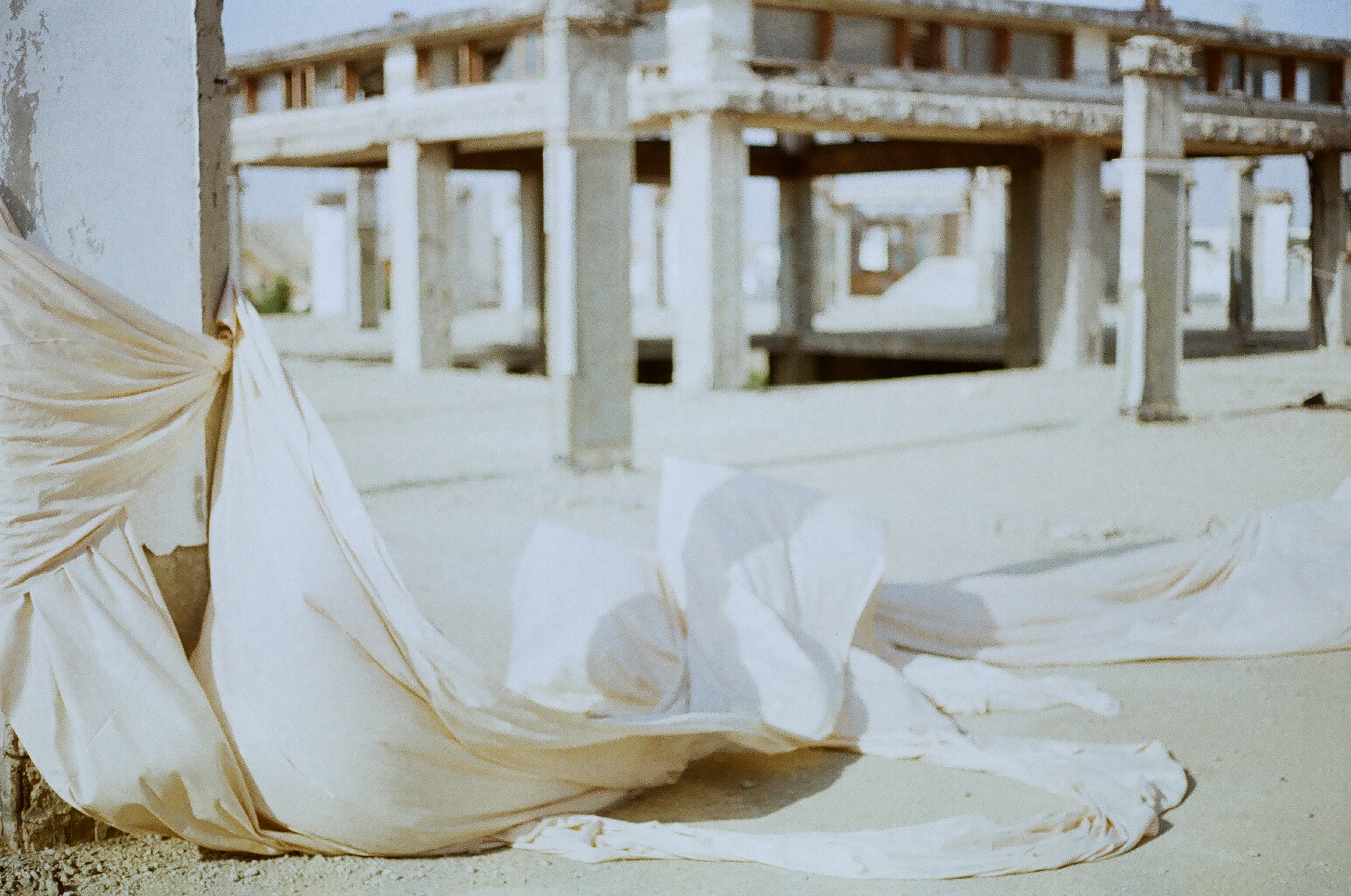 “Temporal Reverie” is a set design project situated in an abandoned supermarket in Jeddah, Saudi Arabia. The installation explored themes of temporality and light, transforming the neglected space into an ethereal environment. Delicate fabric veils were suspended from the walls, interacting with sunlight to create shifting patterns, diffused glows, and dynamic shadows. I was directly involved in designing and arranging the installation, carefully considering how each element would respond to the changing light and spatial context. The interplay of light, texture, and movement invited viewers to pause and reflect on the impermanence of human interventions.